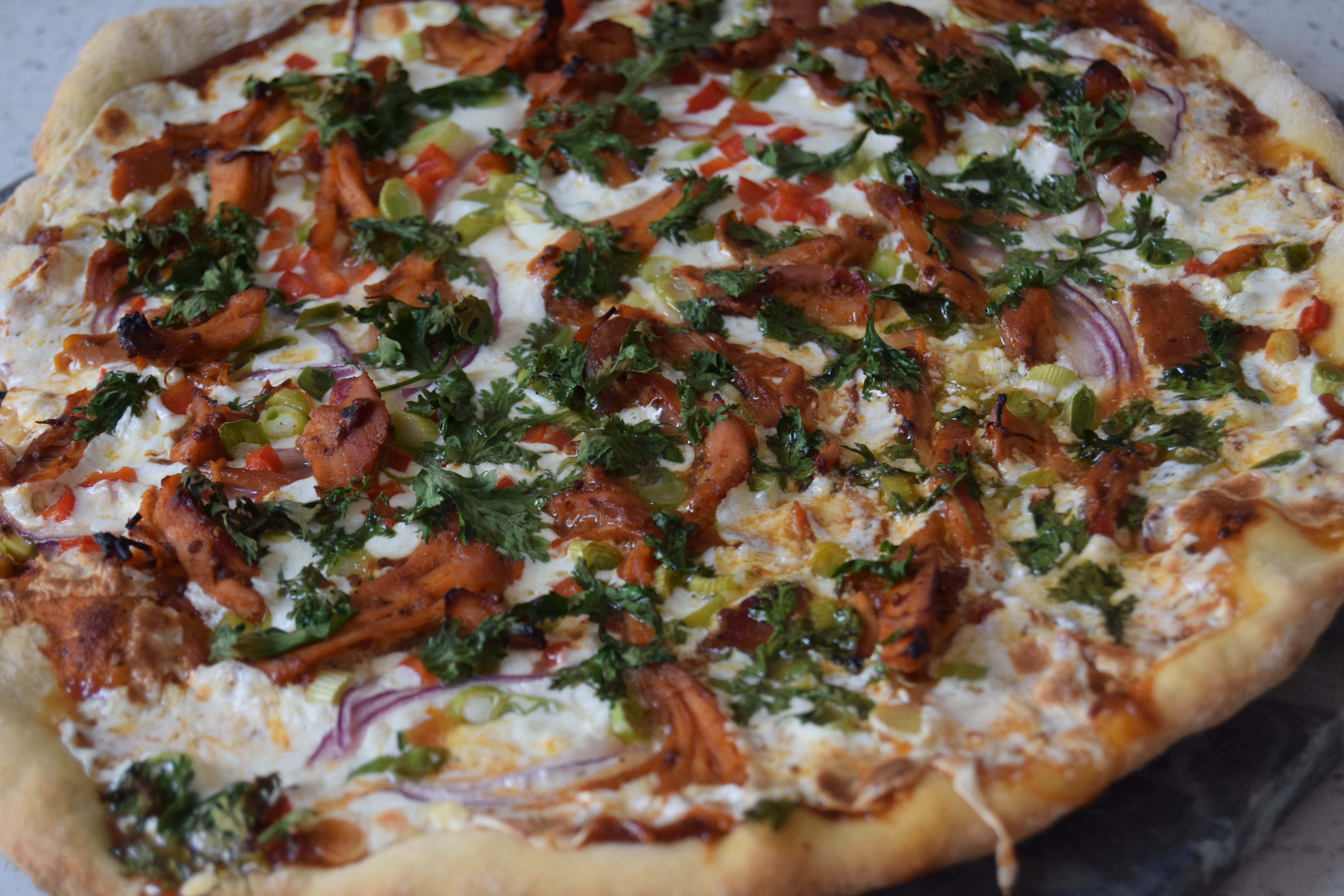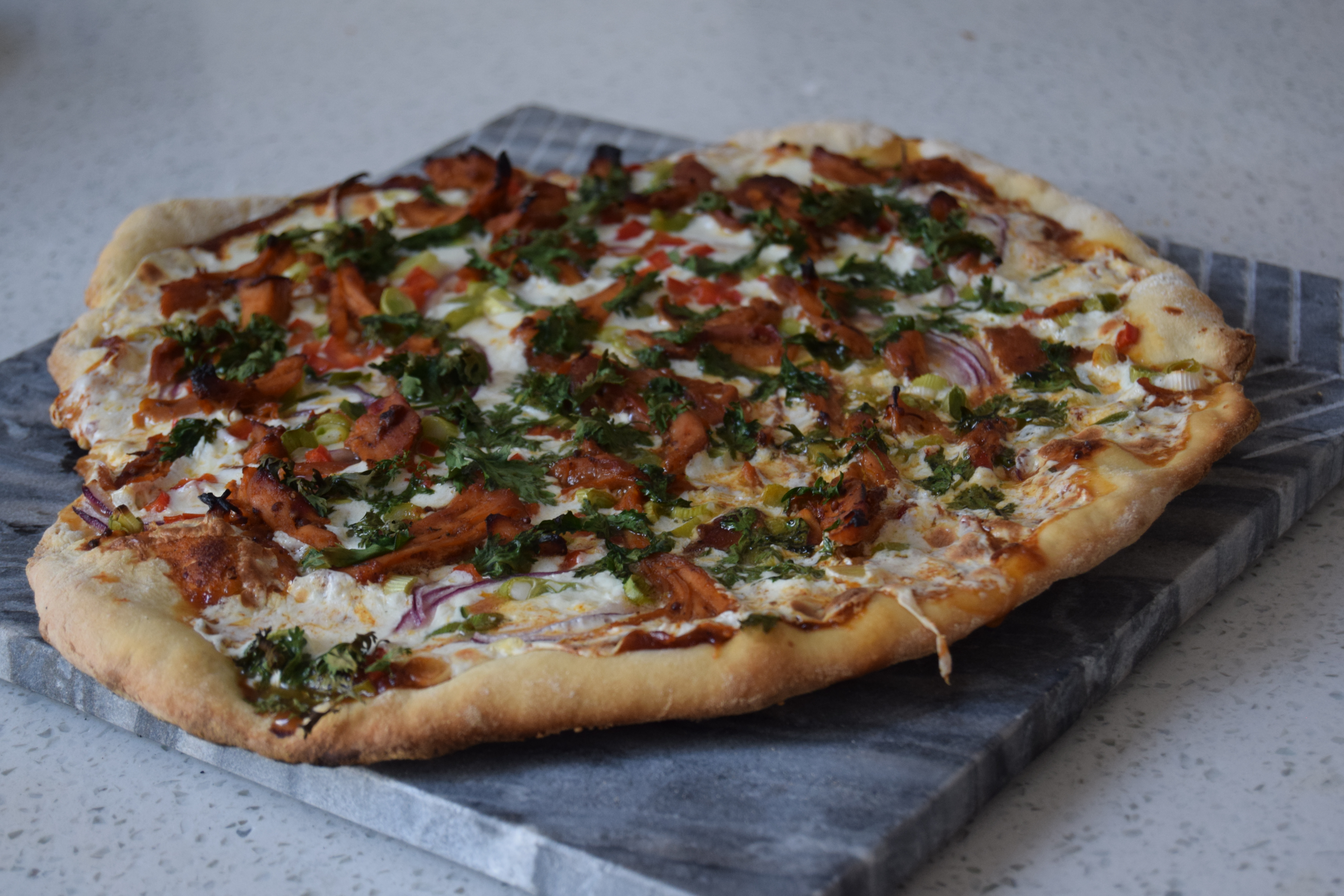 When I was a kid, the first time i learned that BBQ chicken pizza was a thing, I was at a well-known chain that we’ll not name here. And for a young kid, it was a great experience. Flash forward to today, and I don’t think you could get me to go back to that establishment. But BBQ chicken pizza still appeals to me, so when I gave my girlfriend a list of pizza options for her to pick from, I was pretty happy this made the cut.