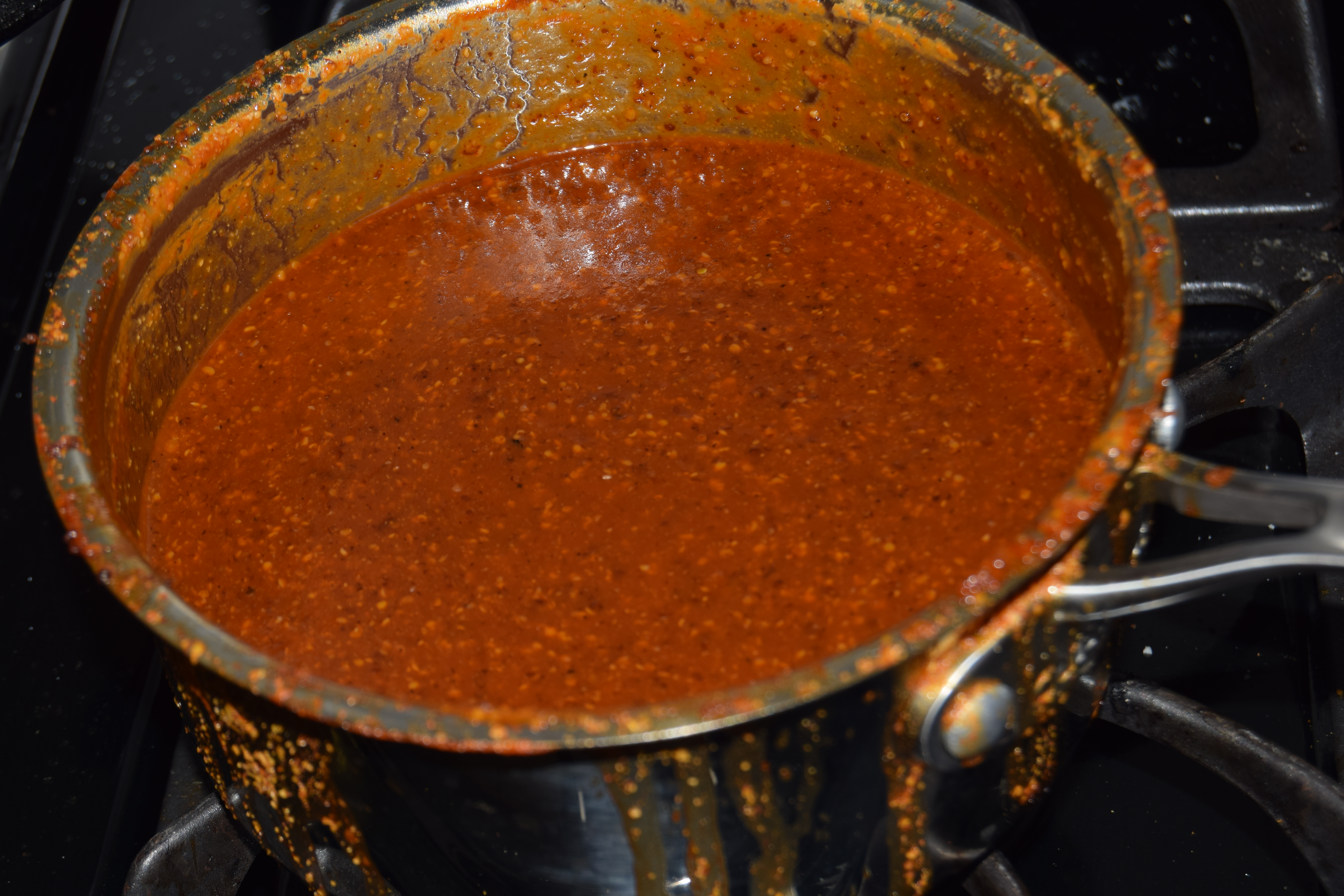– While that’s cooking, we’ll make some sauce. Combine all the sauce ingredients into a pot, bring to a boil, turn your heat down to low, and let it simmer for 2 hours. Stir it pretty regularly especially as it comes to its first boil, as the sugar in the sauce can burn on the bottom if you let it sit for too long at too high of heat.