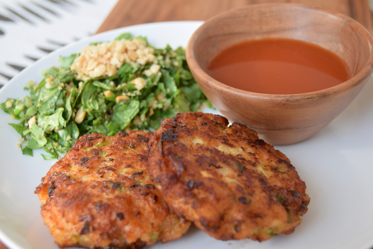 But watermelon hot sauce needs something good to go on, and fish tacos seemed too obvious (never forget the watermelon gazpacho!). So I made some delicious shrimp cakes and a nice herbaceous salad to round things out. Read more about it and get the recipe here: